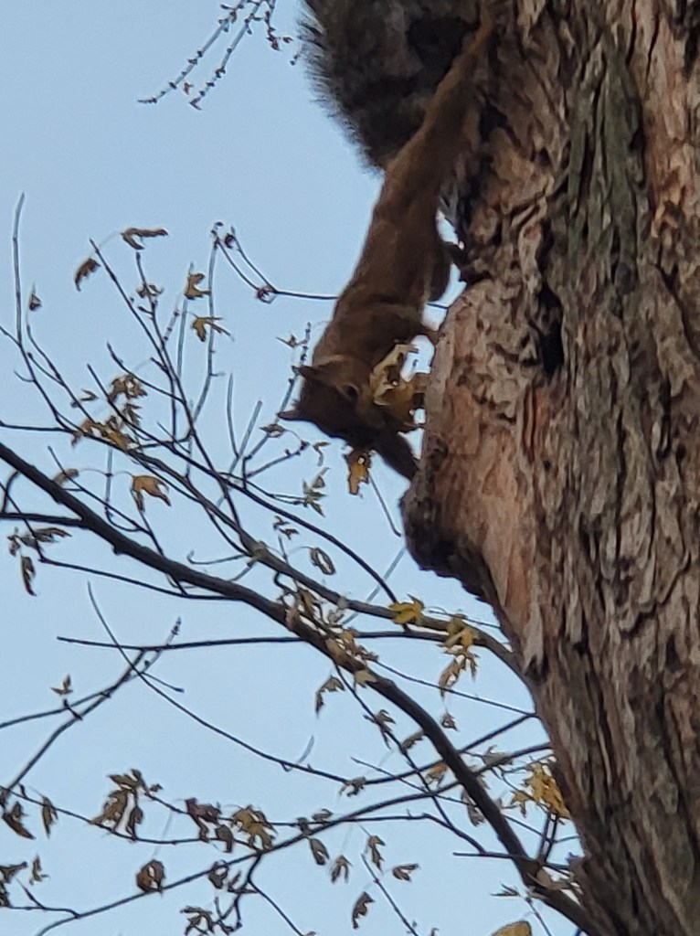 Early morning coffee in hand, I watched squirrels boil out of the massive maple tree in the backyard just as the sun would come up. Somehow, they all came out within seconds of each other. I watched them gather leaves in their mouths and stuff them into those same holes after the first frost hit. Sometimes they pluck them right off the tree.