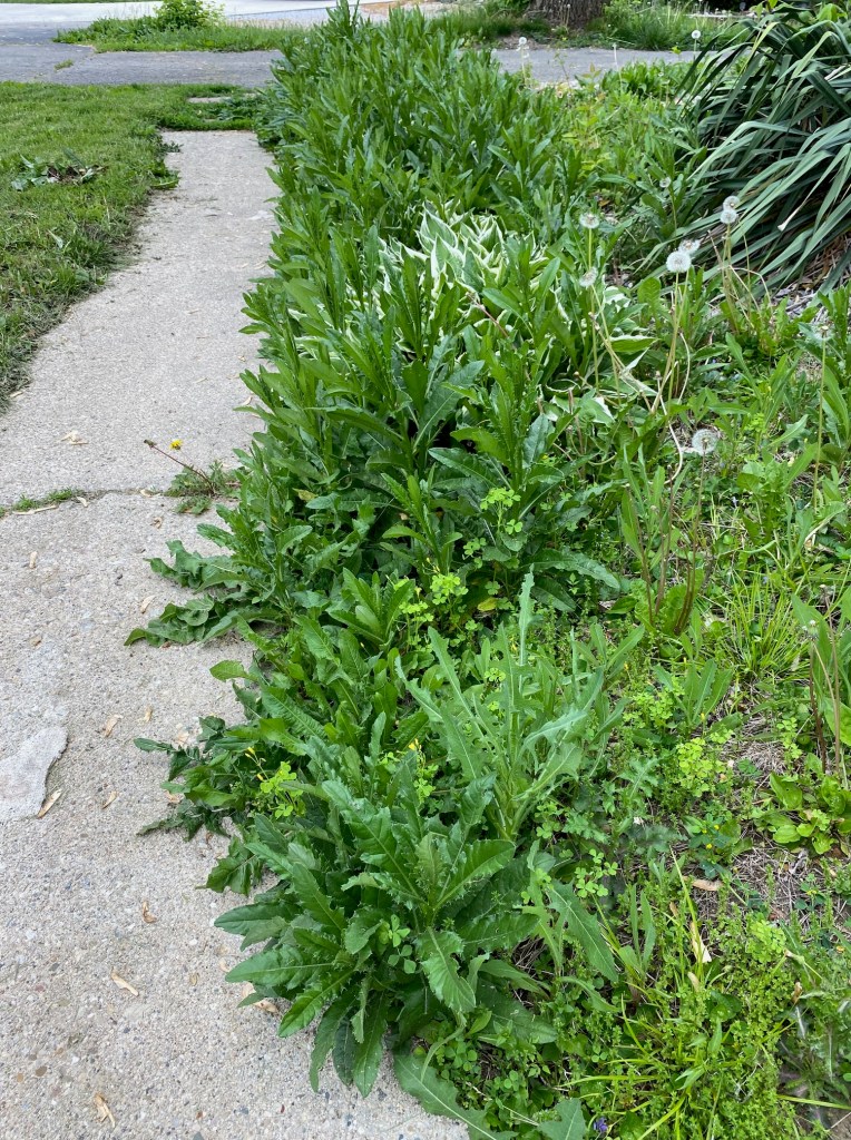 That was how I found myself outside, ripping out the precious, life-supporting wildflowers while the smoke from Canada’s wildfires blanketed Indiana. The mature ones come out easily, but the sprouts are very stubborn. I reminded myself of two things over and over as I pulled. Research any plant I don’t know before I let it grow, and 2 species of butterflies lay their eggs on this thistle, which makes me the butterfly murderer.