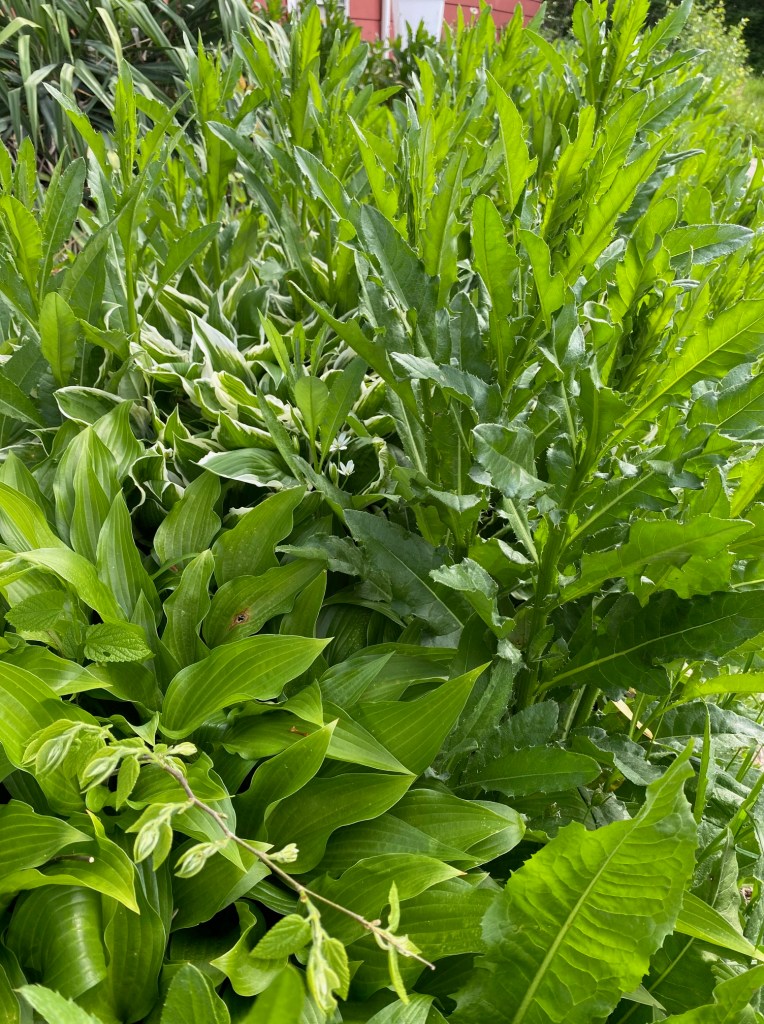 We watched Kiss the Ground this past spring and learned how living plants pull bad carbon from the air, which feeds bacteria through the roots, which then emit good carbon into the soil. Suddenly, my son gets very protective of the thistle that had been growing all over the property. It is healing the environment, he says. We look up what pollinators are supported by thistle. There are over 200 species of insects alone, because bees aren’t the only things that pollinate. As well as various bird species. I had to admit I’d observed a hummingbird visit them as well. Left without much to mount an argument after that, I agree that we could let it grow until we had other native things to offer our pollinators.